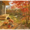 子どもが遊ぶ横で、芝刈りや手入れをする。