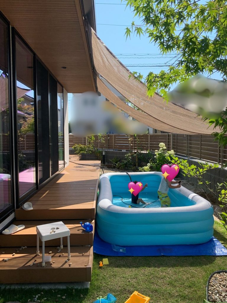 プールがなくても水遊びしていますが、プールがあるとテンションが違います。